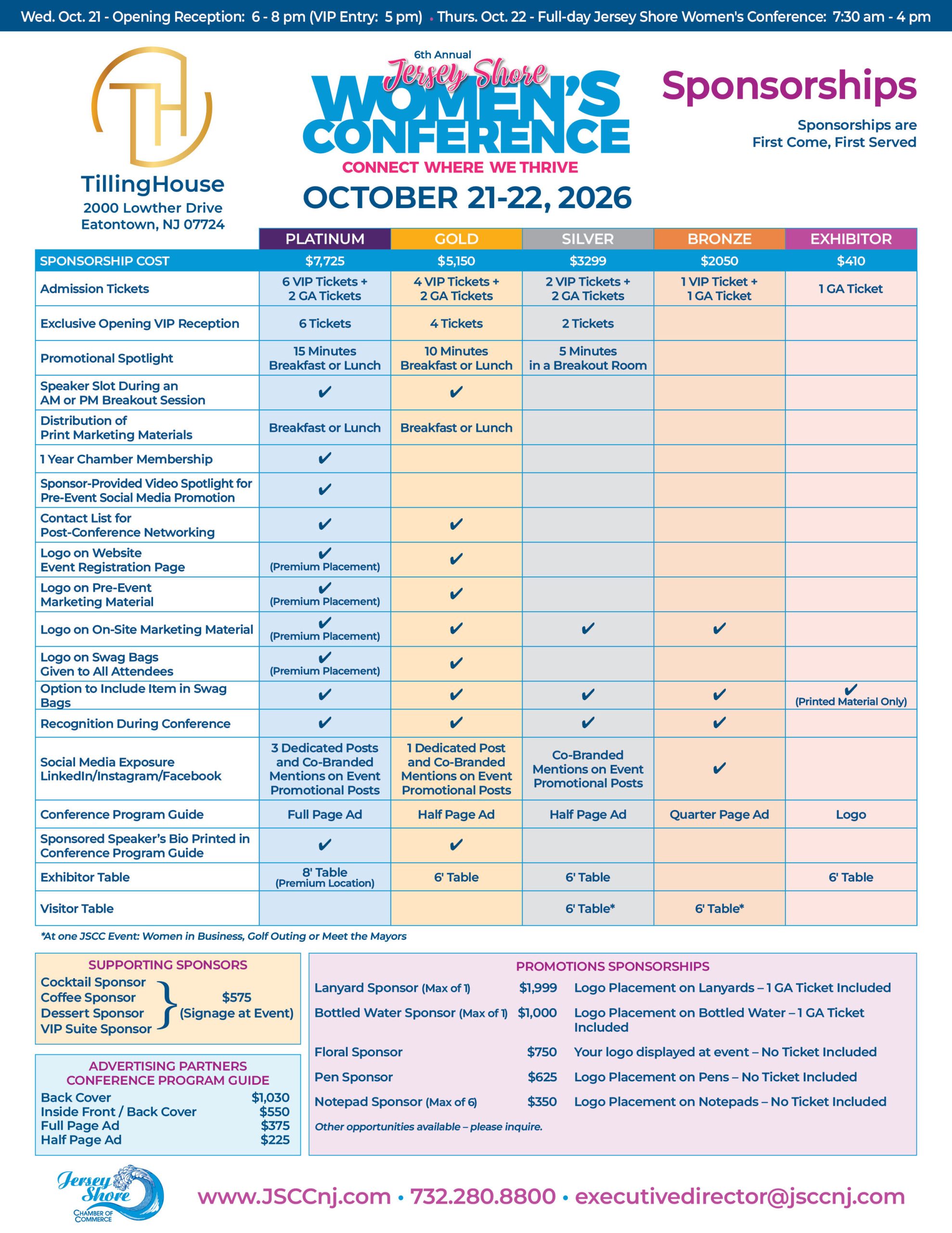 Thurs. Oct. 23 – Full-day Jersey Shore Women’s Conference: 7:30am – 4pm